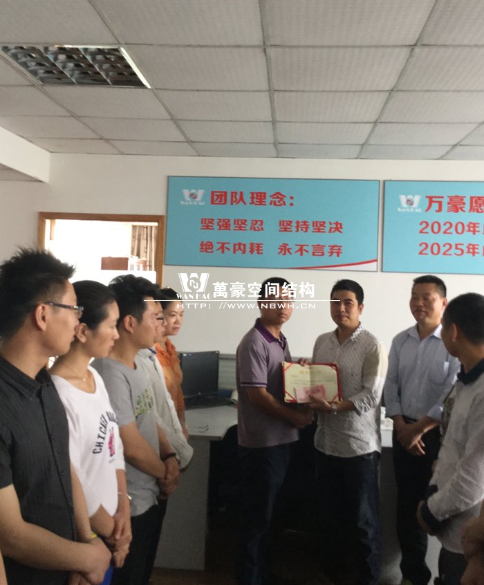 為了提高員工工作積極性,表彰先進,樹立典型,鼓勵更多的員工在工作崗位成長成才,在晨會上對設(shè)計部陳斌進行了獎勵,設(shè)計部經(jīng)理為其頒發(fā)了榮譽證書和獎金,同時希望其他員工向優(yōu)秀員工學(xué)習(xí),努力在工作中不斷創(chuàng)新,積極進取,為公司的發(fā)展貢獻自己的力量。