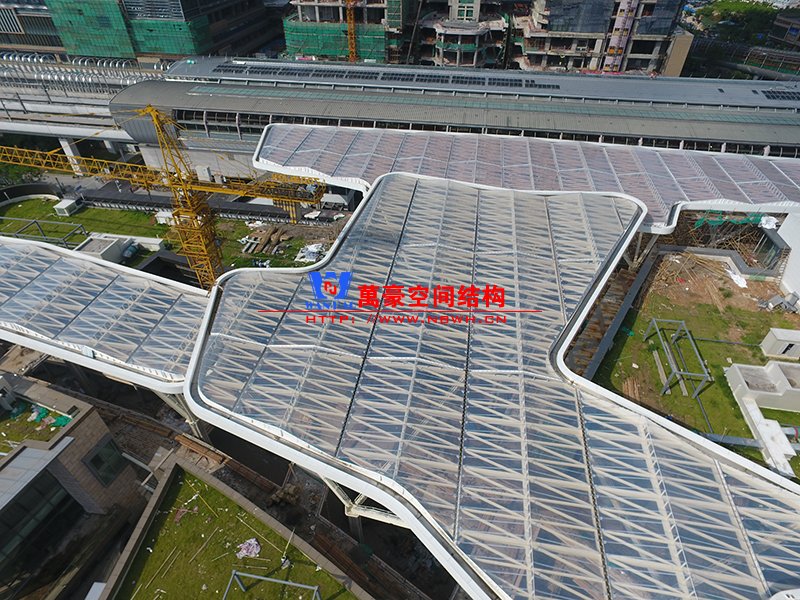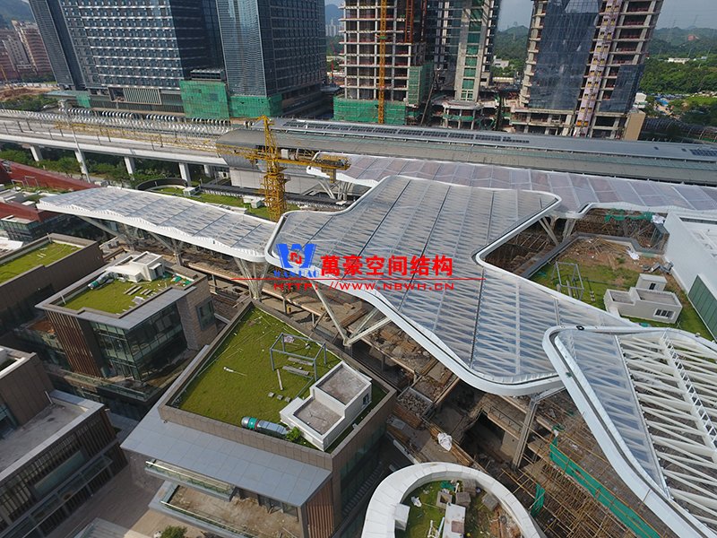 深圳龍華地鐵站ETFE膜結(jié)構(gòu)天幕項(xiàng)目由我公司負(fù)責(zé)設(shè)計(jì)及承建,項(xiàng)目由4個(gè)出入口單體組成,ETFE展開(kāi)面積7800平米,二次鋼結(jié)構(gòu)120噸,結(jié)構(gòu)落柱采用目前最流行的樹(shù)形節(jié)點(diǎn)支撐,在結(jié)構(gòu)安全的同時(shí)更具層次感。同時(shí)該項(xiàng)目也完美突出了ETFE膜材高透光、高自潔性及耐高溫的優(yōu)點(diǎn)。