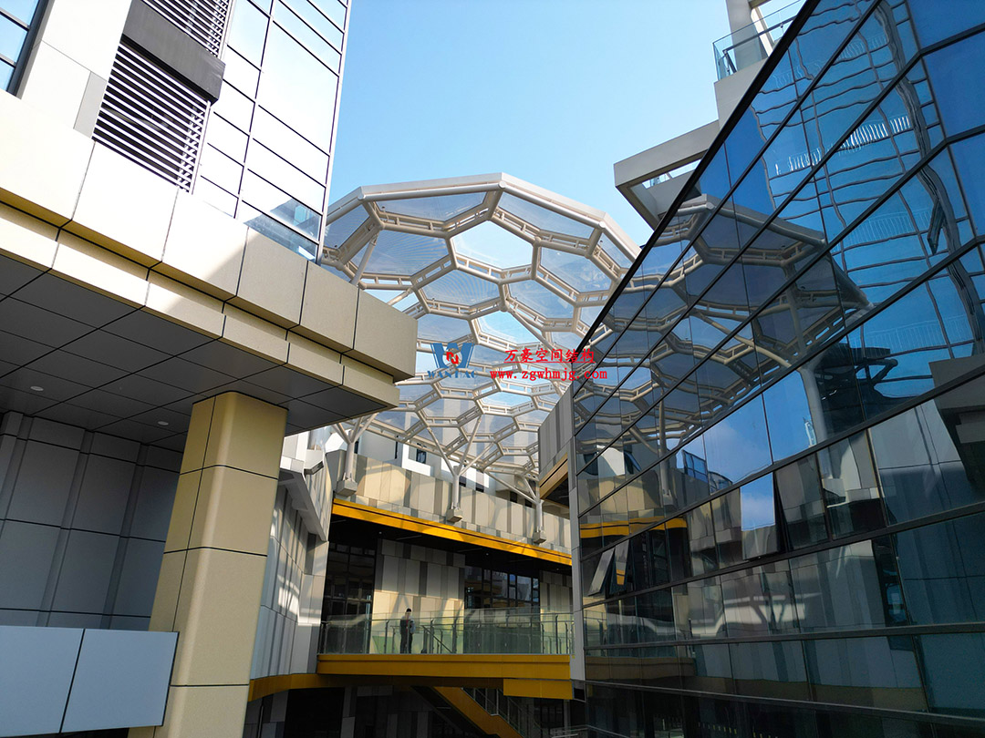 嘉興長安里ETFE氣枕鋼膜結(jié)構(gòu)頂棚工程位于嘉興市長安里街區(qū),該項目總用鋼量約440噸,ETFE膜結(jié)構(gòu)展開面積約3200平米。