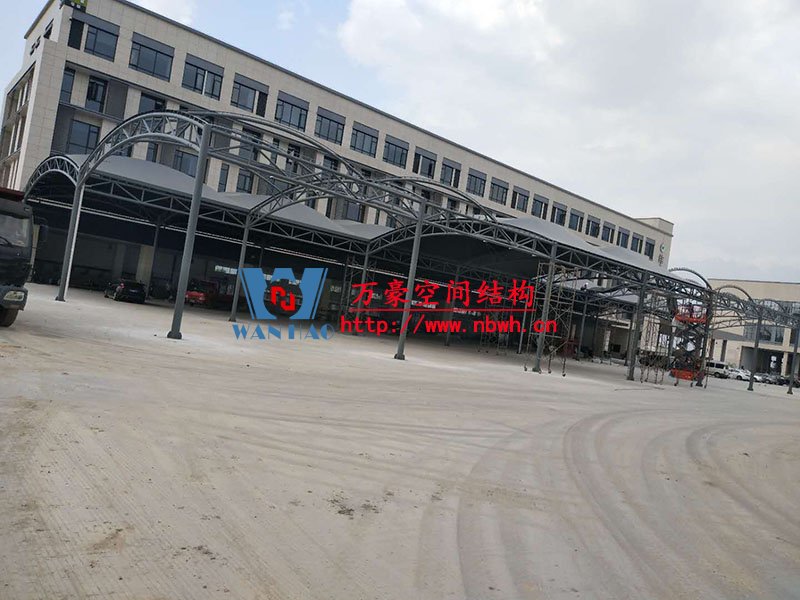 奉化方橋農(nóng)副鋼膜結(jié)構(gòu)雨棚工程位于浙江省寧波市奉化市內(nèi),此工程用鋼量100噸,膜結(jié)構(gòu)展開面積3500平米,由寧波萬豪空間結(jié)構(gòu)工程有限公司承建。