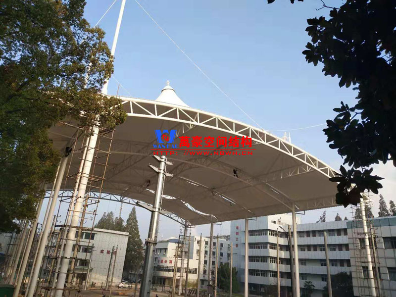 安慶培訓(xùn)基地大棚膜結(jié)構(gòu)工程位于安徽省安慶市電力培訓(xùn)基地內(nèi),該工程用鋼量150噸,膜結(jié)構(gòu)展開面積3000平米。