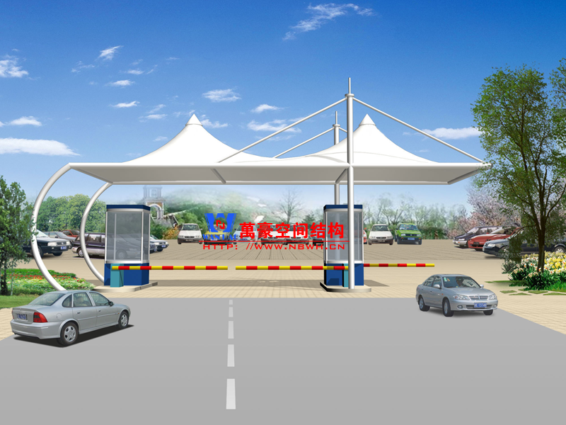 什么是出入口膜結(jié)構(gòu)?出入口膜結(jié)構(gòu)一般指的是應(yīng)用了張拉膜結(jié)構(gòu)的出入口建筑,比如小區(qū)崗?fù)?、車庫出入口、收費(fèi)站等。出入口膜結(jié)構(gòu)體系由膜面、邊索、脊索、谷索、支承結(jié)構(gòu)、錨固系統(tǒng),以及各部分之間的連接節(jié)點(diǎn)等組成。以上是出入口膜結(jié)構(gòu)工程的設(shè)計(jì)效果圖,改天萬豪再給大家展示下實(shí)際案例。