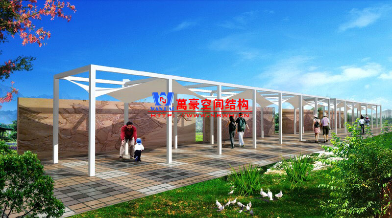 江西膜結(jié)構(gòu)旅游區(qū)設(shè)計效果圖,指的是在江西的旅游區(qū)建造膜結(jié)構(gòu)景觀設(shè)施的效果圖。比如在景區(qū)的過道旁,設(shè)計一個膜結(jié)構(gòu)遮陽棚,不但有裝飾的效果,而且可以給過往的游客起到遮陽乘涼的作用。在旅游區(qū)的門口收費臺的上方,搭建一個膜結(jié)構(gòu)頂棚,可以讓門口格外醒目,而且還能讓工作人員能在相對陰涼的環(huán)境下工作,同時還能減少收費臺被自然環(huán)境損耗的程度,可謂是一舉三得啊。江西膜結(jié)構(gòu)旅游區(qū),你值得考慮哦。