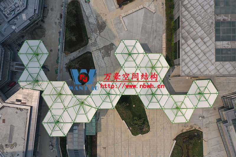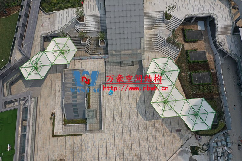 五鄉(xiāng)地鐵站傘狀PTFE膜結(jié)構(gòu)項目位于浙江省寧波市楊柳郡,項目由19座倒傘膜結(jié)構(gòu)組成,倒傘寓意盛開的牽?;āT擁椖磕げ氖褂眠M(jìn)口PTFE膜材,膜結(jié)構(gòu)展開面積5000平米,用鋼量100噸,由寧波萬豪空間結(jié)構(gòu)工程有限公司承建。