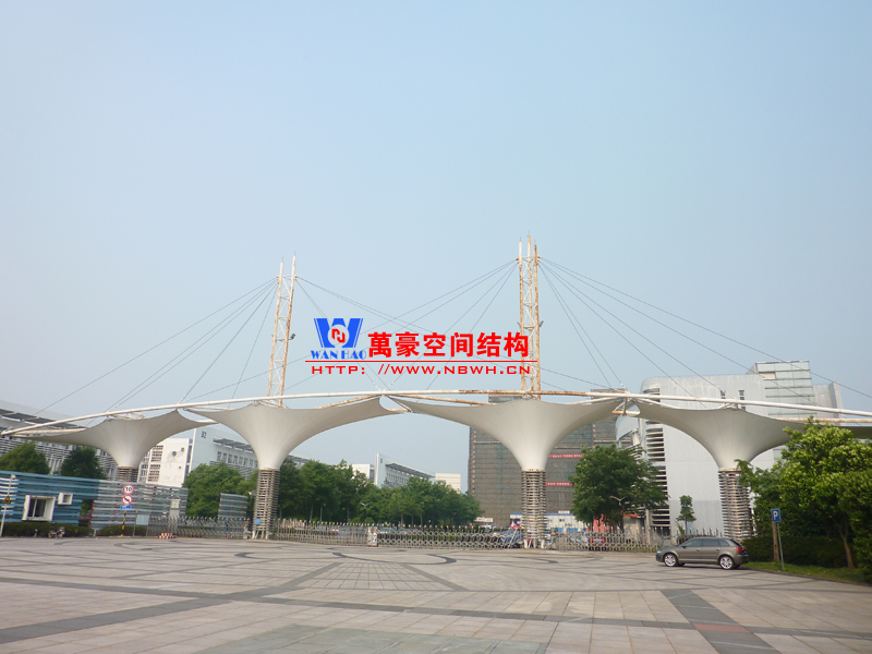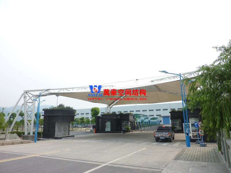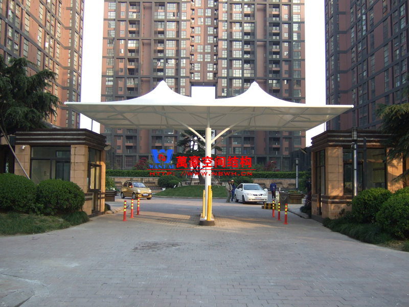 出入口膜結(jié)構(gòu)建筑,指的是在建筑物的出入口搭建膜結(jié)構(gòu),起到遮陽擋雨的作用。例如收費站、小區(qū)門口、企業(yè)門口、地下車庫出入口等。