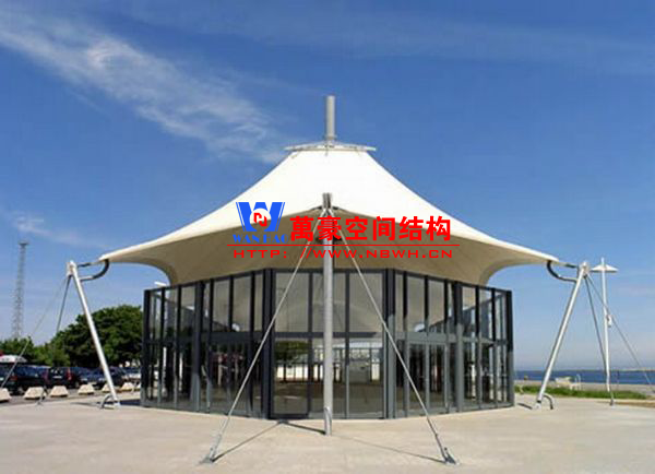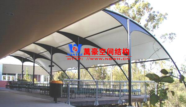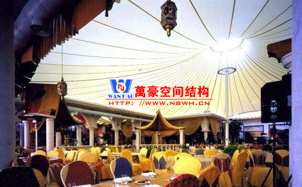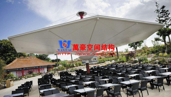 餐廳膜結(jié)構(gòu)建筑主要包括戶外餐廳膜結(jié)構(gòu)和室內(nèi)餐廳膜結(jié)構(gòu)。戶外餐廳膜結(jié)構(gòu)形式多樣,有的是整個覆蓋在餐廳之上的膜結(jié)構(gòu),有的是覆蓋某片固定區(qū)域做為用餐區(qū)的膜結(jié)構(gòu),還有的采取一桌一頂棚的形式存在,主要功能是遮陽擋雨作用。室內(nèi)餐廳膜結(jié)構(gòu)建筑主要分為頂棚膜結(jié)構(gòu)和裝飾膜結(jié)構(gòu)兩種,主要起到裝飾作用,增加環(huán)境的美感。