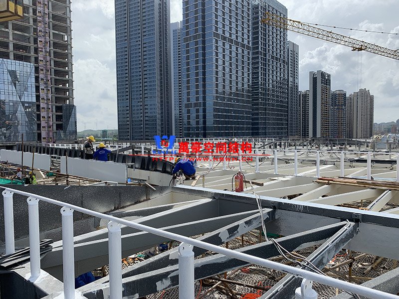 紅山六九七九商業(yè)中心項目幕墻工程Ⅱ標段膜結(jié)構(gòu)鋼結(jié)構(gòu)工程位于廣東省深圳市龍華區(qū),此工程用鋼量300噸,膜結(jié)構(gòu)展開面積5000平米,由寧波萬豪空間結(jié)構(gòu)工程有限公司承建。