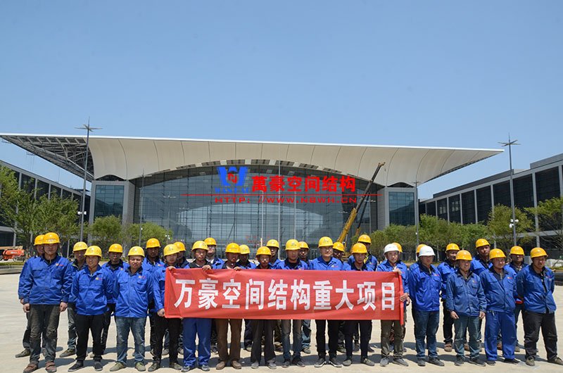 占據(jù)著整個(gè)會(huì)展中心核心位置的入口大廳采用輕盈、潔白的體塊跨越95m的無(wú)柱空間,支承在兩側(cè)的耳房上,并在大廳設(shè)置了通透的玻璃幕墻。為了避免微拱的屋面桁架將很大的水平荷載傳遞給混凝土結(jié)構(gòu),結(jié)構(gòu)工程師沿用了深圳會(huì)展中心的先滑后固的支座施工技術(shù),在大幅減小拱腳水平推力的同時(shí),亦保證了在風(fēng)、雪、地震荷載作用下可以將荷載均勻地傳遞給兩側(cè)的承載結(jié)構(gòu)。