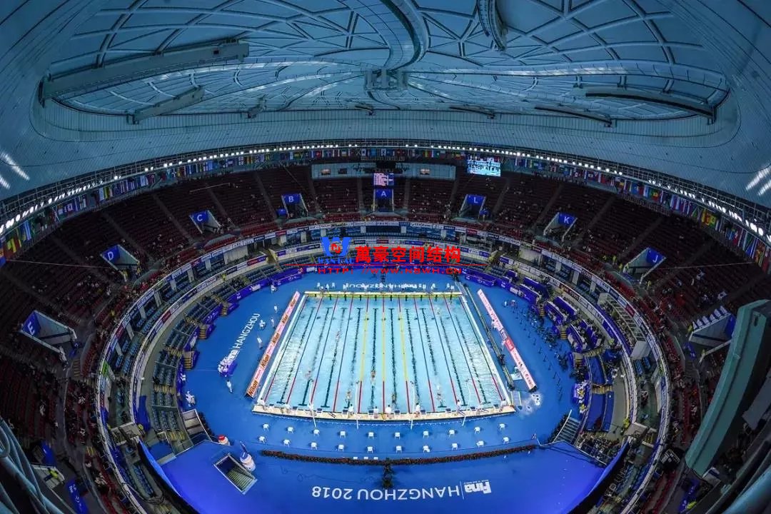 杭州奧體博覽城體育游泳館,則酷似一雙翅膀,似乎呼應(yīng)了體育解說員韓喬生的名言:菲爾普斯就像一只在水中的大鳥。項目總建筑面積39.7萬平方米,包括1.8萬座的體育館和6000座的游泳館。