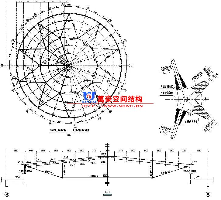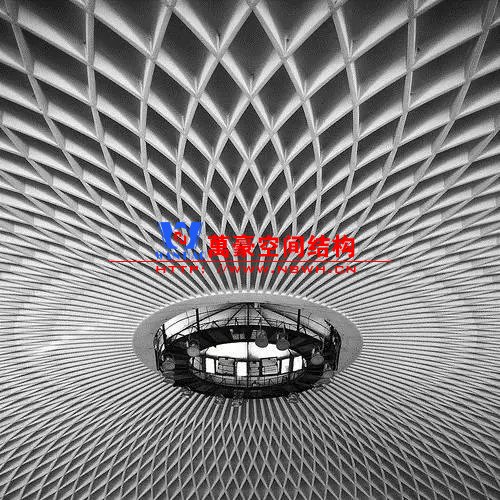 還是用鋼結(jié)構(gòu)比較穩(wěn)妥。要用鋼結(jié)構(gòu)表現(xiàn)天窗的輕盈,網(wǎng)殼是一個(gè)很好的選擇。經(jīng)典的網(wǎng)殼劃分方法有很多,比如肋環(huán)型、聯(lián)方型、施威德勒型、凱威特型等等。其中肋環(huán)型適合中、小跨度;聯(lián)方型抗風(fēng)抗震性能相對(duì)更好,適用與大、中跨度;施威德勒型能承受較大的非對(duì)稱荷載,適用于大、中跨度;凱威特型為均勻的三角形網(wǎng)格,適用于各種跨度。