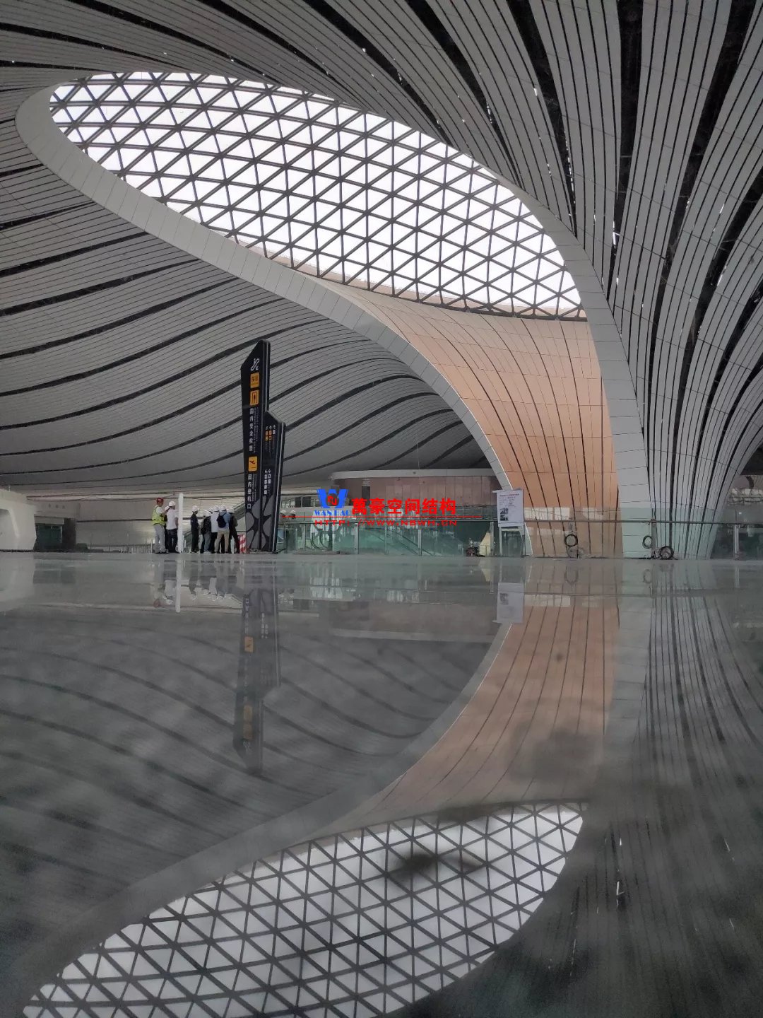 鋁合金結(jié)構(gòu)網(wǎng)殼經(jīng)典案例也有很多,其中近兩年被大家熟知的有牛首山大小穹頂和北京新機(jī)場(chǎng)天窗。鋁構(gòu)件的尺度都很小,從通透性上來(lái)說(shuō),效果比普通鋼網(wǎng)殼要好。對(duì)于本項(xiàng)目要填滿的圓圈,也不失為一種選擇。
