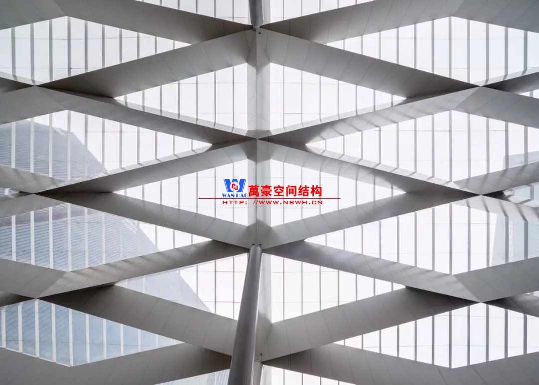 傘狀穹頂結(jié)構(gòu)充分發(fā)揮了網(wǎng)殼的形抗優(yōu)勢(shì),最小桿件截面僅100x100mm,營(yíng)造出建筑師非常期待的精致輕盈效果。