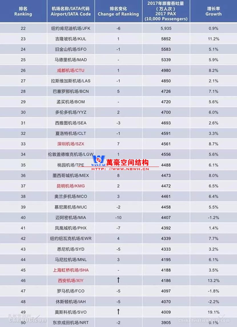 我們收集了世界TOP50和國內(nèi)TOP20的機場資料,發(fā)現(xiàn)其中比較有特色且有參考意義的案例,進行比選與討論。