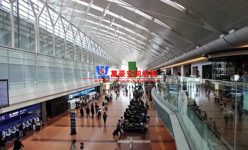 除了實腹鋼梁,我們還可以選擇更加輕盈的張弦梁,其主要表現(xiàn)即在張弦梁的造型以及索節(jié)點,建筑效果走的路線也多為精細風(fēng)。其中經(jīng)典案例有浦東國際機場T1航站樓和東京羽田機場,歷經(jīng)多年也不顯得過時。