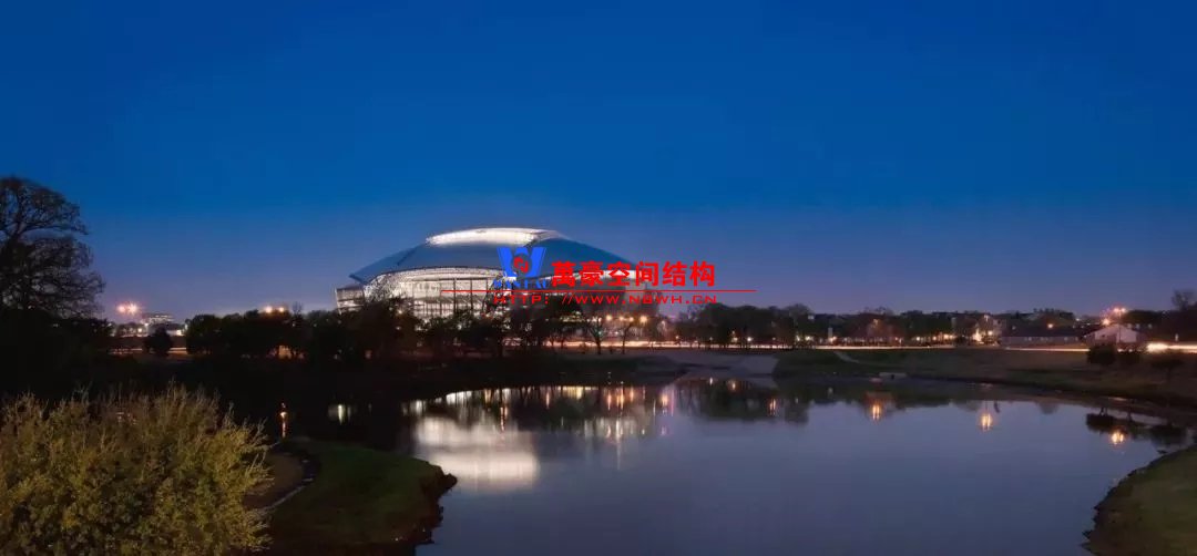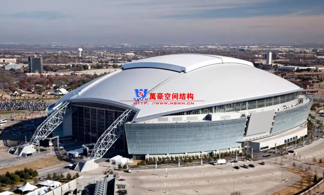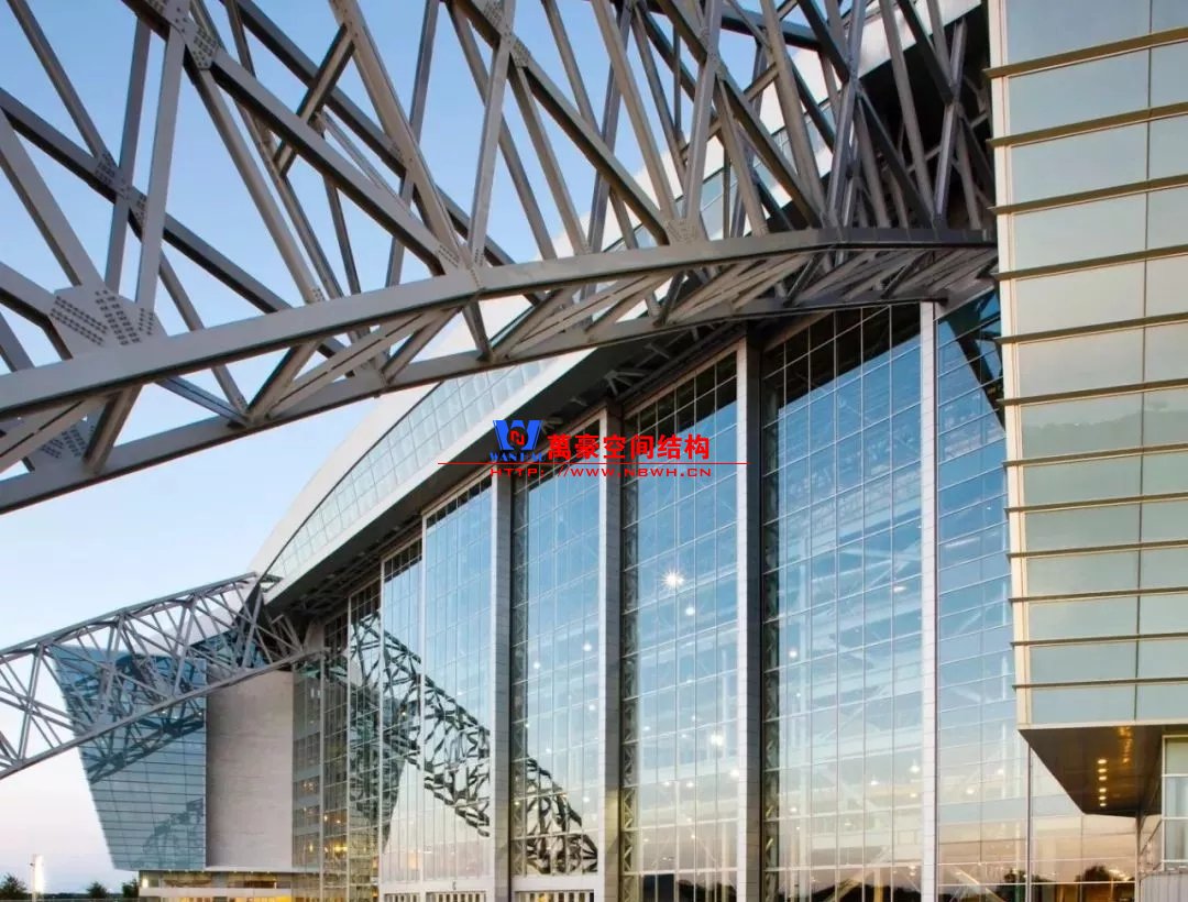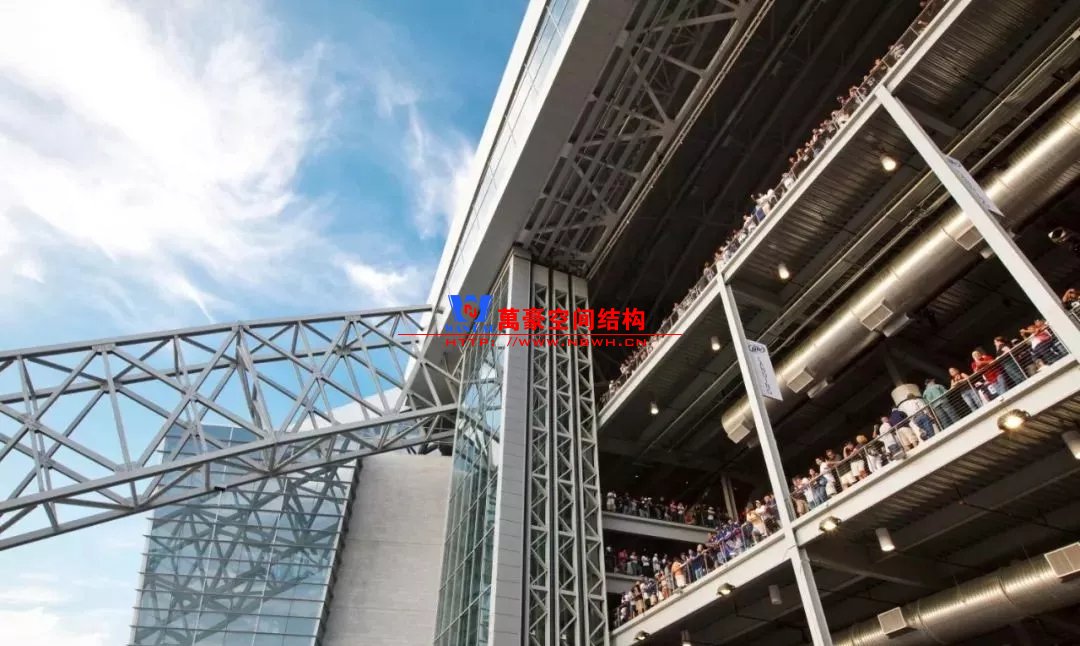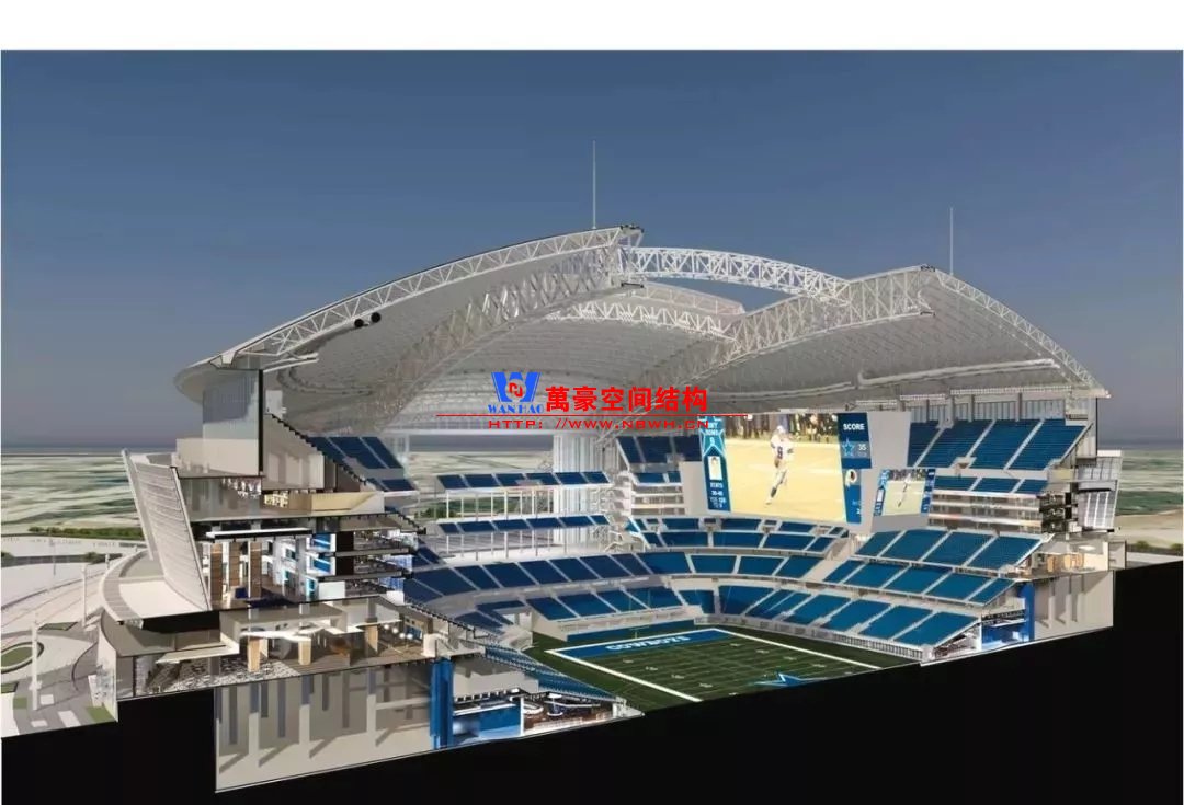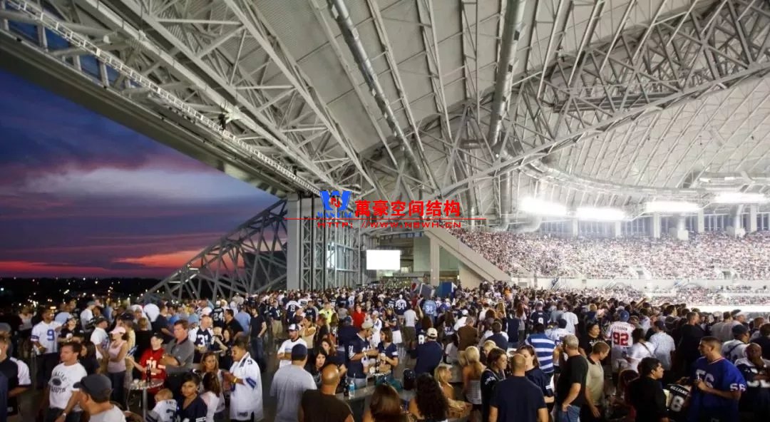 兩個(gè)鋼制拱形結(jié)構(gòu)分別覆蓋整個(gè)體育場(chǎng),長達(dá)1,290英尺,支撐著體育場(chǎng)龐大的內(nèi)部空間,構(gòu)建了球場(chǎng)兩端入口的球迷廣場(chǎng)。