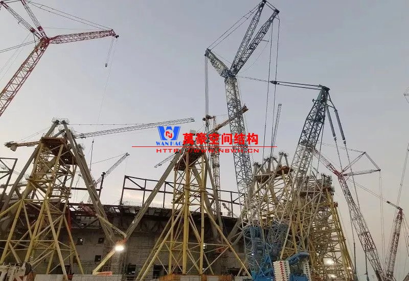 當?shù)貢r間2019年11月4日凌晨,盧賽爾體育場完成重大施工節(jié)點目標,工程主體鋼結(jié)構(gòu)的48榀V柱吊運全部完成,為后續(xù)的幕墻及壓環(huán)安裝等重要工序的推進奠定了基礎。據(jù)項目經(jīng)理劉大偉介紹,V柱吊裝過程中,因受看臺鋼結(jié)構(gòu)施工的影響和制約,在9月下旬已吊裝完成44榀,且剩余4榀均已具備吊裝條件的情況下,項目部領(lǐng)導及專家們?yōu)檎麄€體育場施工進度著想,經(jīng)討論、協(xié)商后一致決定將作業(yè)場地協(xié)調(diào)給看臺鋼結(jié)構(gòu)施工,使V柱吊裝工序整整推后了一個月才得以完成,但在總工期上,為整個項目的施工有效節(jié)省了15天時間。