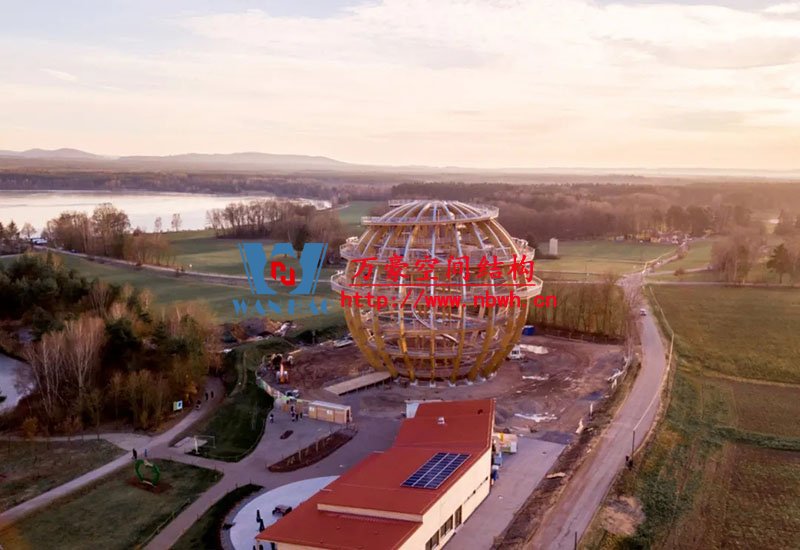在德國,HESS TIMBER 建造了一個木結(jié)構(gòu)球體建筑 Wooden Sphere Steinberg am See。作為世界上最大的可于內(nèi)部行走的木結(jié)構(gòu)球體建筑,從設(shè)計的角度來看,造型新穎獨特,從工程學的角度來看也是非凡之作。