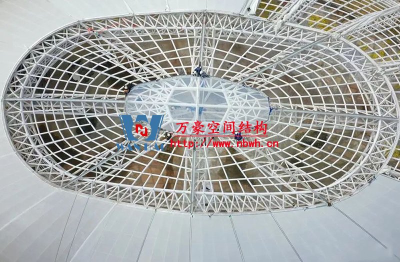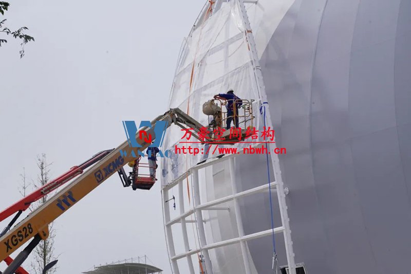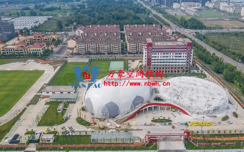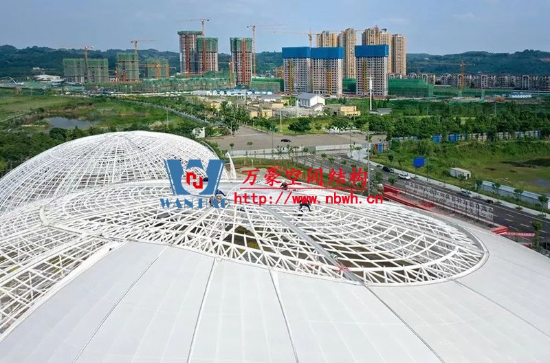目前訓(xùn)練中心主體結(jié)構(gòu)已修建完成,屋蓋系統(tǒng)膜結(jié)構(gòu)、室內(nèi)裝潢正在同步施工。