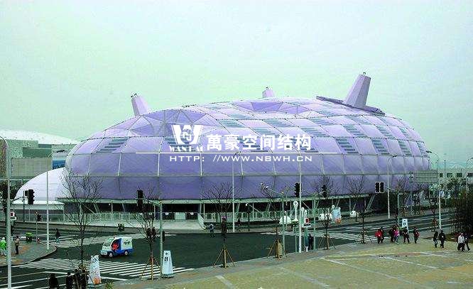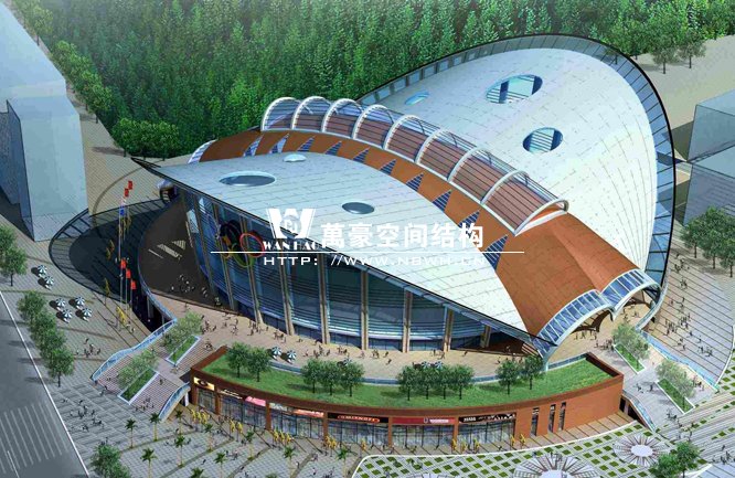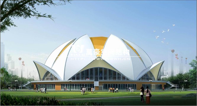 1. 骨架式膜結(jié)構(gòu)體育館:此類(lèi)膜結(jié)構(gòu)是固定在精致鋼材、空間桁架或其他堅(jiān)固的構(gòu)架上,稱(chēng)之為骨架式膜結(jié)構(gòu)體育館。