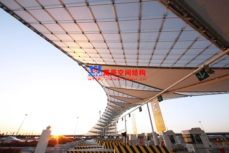 東常蘆荻山收費(fèi)站膜結(jié)構(gòu)效果圖,該結(jié)構(gòu)跨度大,造型別致,十分吸引人,有興趣做這種類型收費(fèi)站膜結(jié)構(gòu)的可以聯(lián)系我們哦。