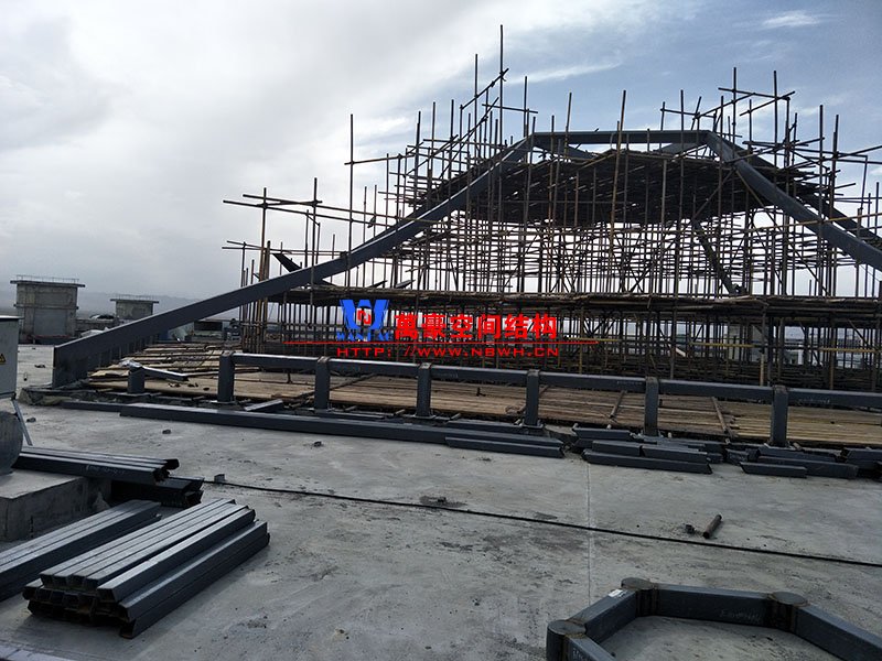 該項(xiàng)目分小蠻腰觀光塔和六角主樓兩部分,其中小蠻腰觀光塔由雙曲面空間鋼結(jié)構(gòu)相互交叉形成幾何形的外掛玻璃組成,主樓由雙曲面穹頂及6條連廊組成。鋼結(jié)構(gòu)跨度35米,鋼膜總面積28000平米,鋼結(jié)構(gòu)用鋼量1100噸。建筑內(nèi)部空間明亮通透,遠(yuǎn)觀猶如大漠孤煙中的鹽湖之晶,近觀仿佛置身于鹽湖中的浪漫滿屋。