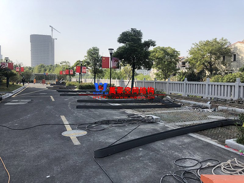 太屺3#地塊商務(wù)樓(慈溪市國(guó)力土地資源投資開發(fā)有限公司)地面膜結(jié)構(gòu)車棚項(xiàng)目位于浙江省寧波市慈溪市,該項(xiàng)目膜結(jié)構(gòu)展開面積2000平米,用鋼量50噸,由寧波萬豪空間結(jié)構(gòu)工程有限公司承建。