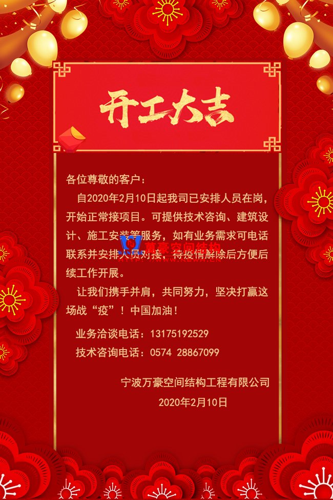 【開工大吉】寧波萬(wàn)豪空間結(jié)構(gòu)工程有限公司開工啦?。?!