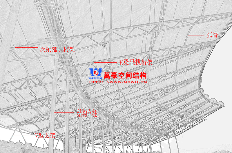 該工程由寧波萬(wàn)豪空間結(jié)構(gòu)工程有限公司進(jìn)行設(shè)計(jì)、制作及安裝,工程于2012年8月竣工。