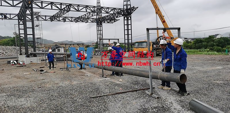 紹興西高速收費站頂棚工程用鋼量80噸,由寧波萬豪空間結(jié)構(gòu)工程有限公司加工和安裝。 目前,項目鋼結(jié)構(gòu)安裝完成。 期待整個工程的完工,來領(lǐng)略它別致的風采。