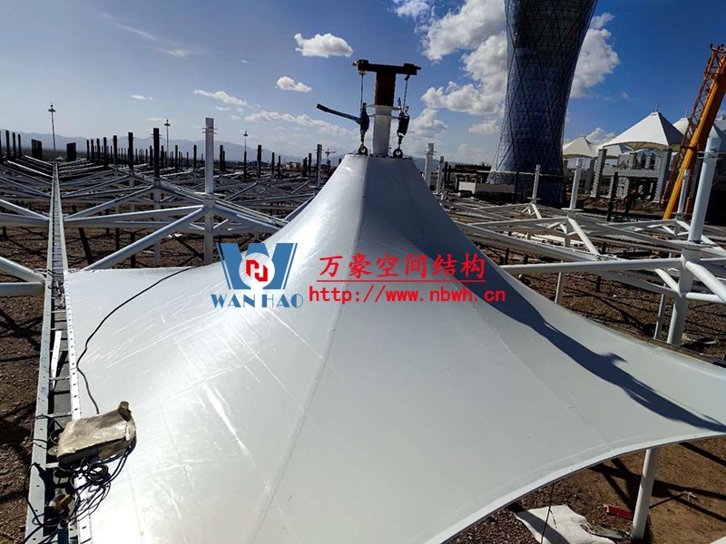 烏蘭縣茶卡景區(qū)旅游扶貧基礎(chǔ)設(shè)施項(xiàng)目(二期)膜結(jié)構(gòu)工程位于青海省海西蒙古族藏族自治州烏蘭縣茶卡景區(qū),工程用鋼量200噸,膜結(jié)構(gòu)展開面積6000平米。