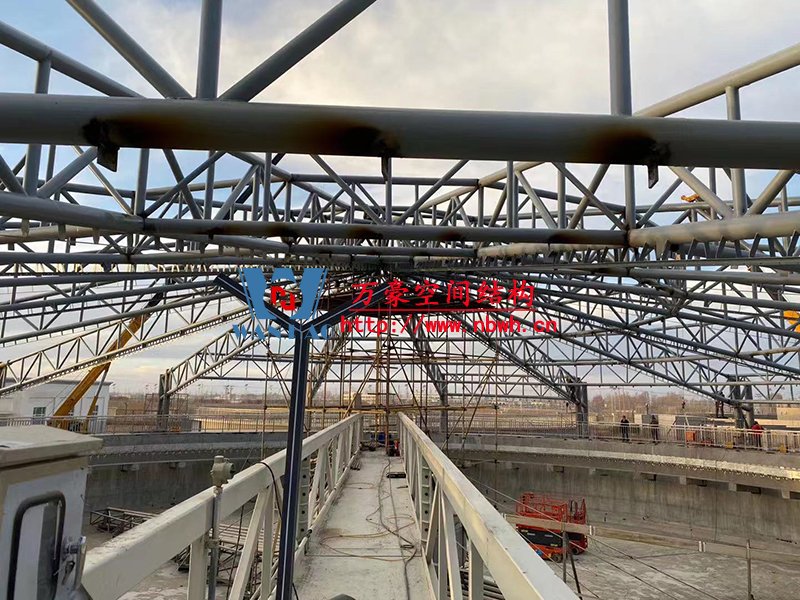 該工程主要建設(shè)格爾木工業(yè)園昆侖工業(yè)區(qū)工業(yè)污水處理廠首期2.5萬立方米/天工程二沉池、水解酸化池和預(yù)沉池池體保溫膜結(jié)構(gòu)安裝。項目用鋼量230噸,膜結(jié)構(gòu)展開面積5000平米。