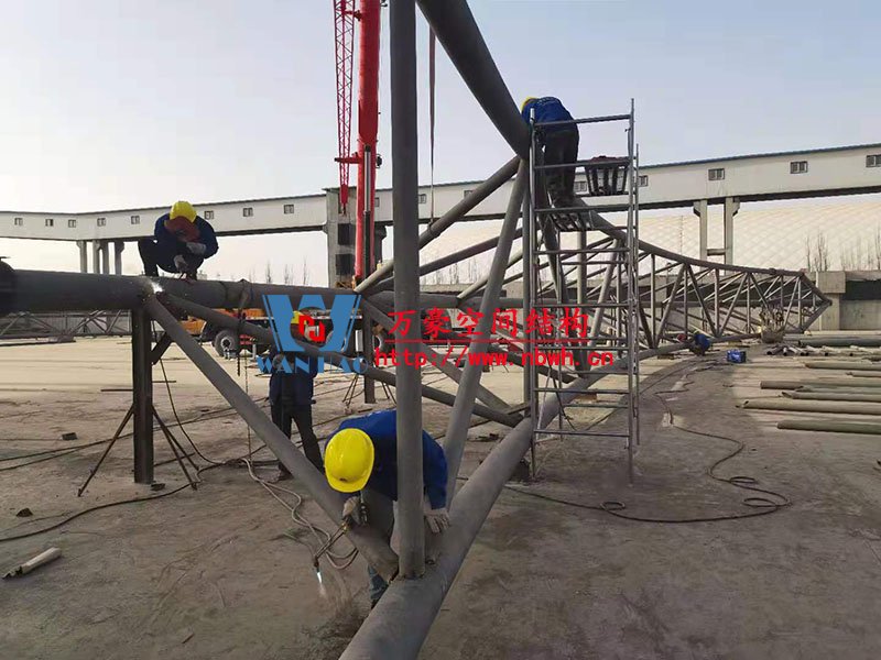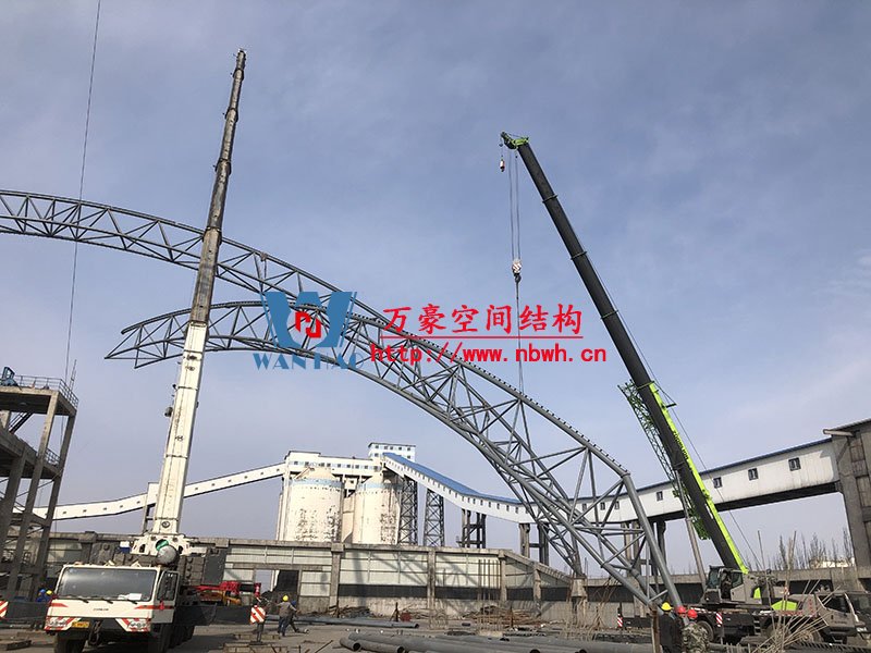 鋼結(jié)構(gòu)主桁架一共6跨,目前已完成2跨。