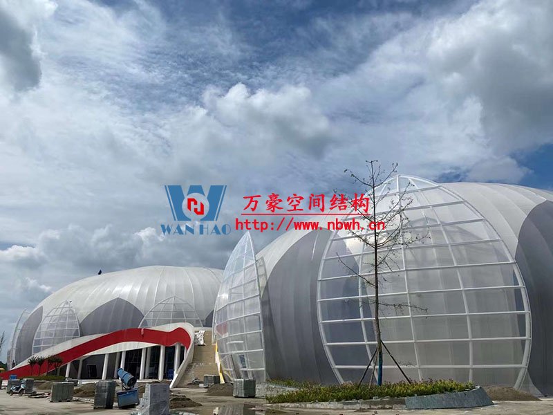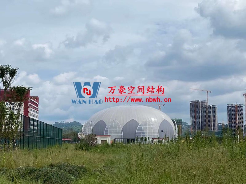全封閉籃球館和多功能館結(jié)構(gòu)部分采用了部分珩架與單層雙曲面網(wǎng)殼組合,屋面膜選用了不同顏色不同材質(zhì)組合構(gòu)成了含苞待放的花朵,項(xiàng)目落成后將為當(dāng)?shù)伢w育活動(dòng)增添活力。