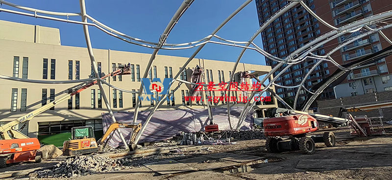 目前,項目鋼結(jié)構(gòu)已完工,準(zhǔn)備開始安裝膜結(jié)構(gòu)。