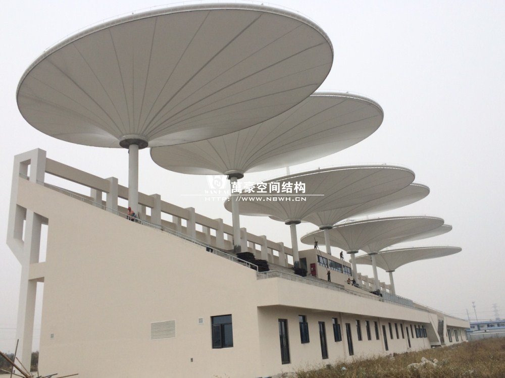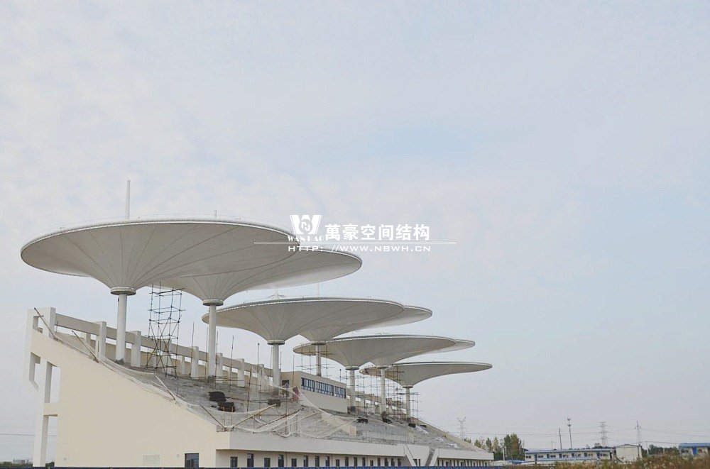 我公司有幸承接“常州大學(xué)西太湖校區(qū)體育看臺項目”。項目位于常州市延政西路與豐澤路交叉口 (常州大學(xué)西太湖校區(qū)體育場內(nèi))。該工程鋼結(jié)構(gòu)用量153噸、膜展開面積3500㎡,膜材采用進口法拉利膜材。