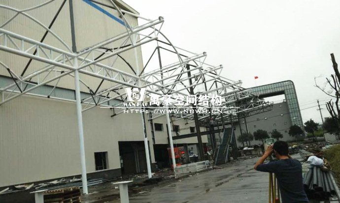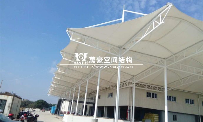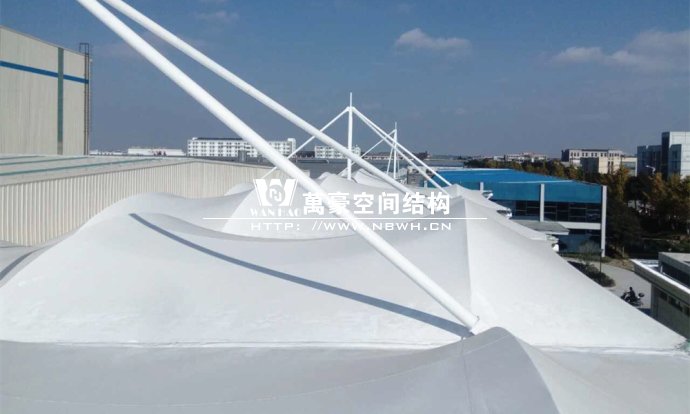 嘉善索菲亞家居(浙江)有限公司膜結(jié)構(gòu)工程就位于嘉善縣的嘉善經(jīng)濟(jì)開發(fā)區(qū)隆全路上。整個(gè)項(xiàng)目總用鋼量達(dá)到了約120噸,膜布投影面積3000㎡。